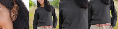- Seamless 1x1 rib collar with two-needle coverstitching on front neck
