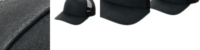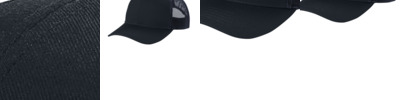 Fabric 100% cotton twill front panels and bill (Solids), 100% polyester mesh back panels; 65/35 polyester/cotton twill front panels and bill (Heather Grey)